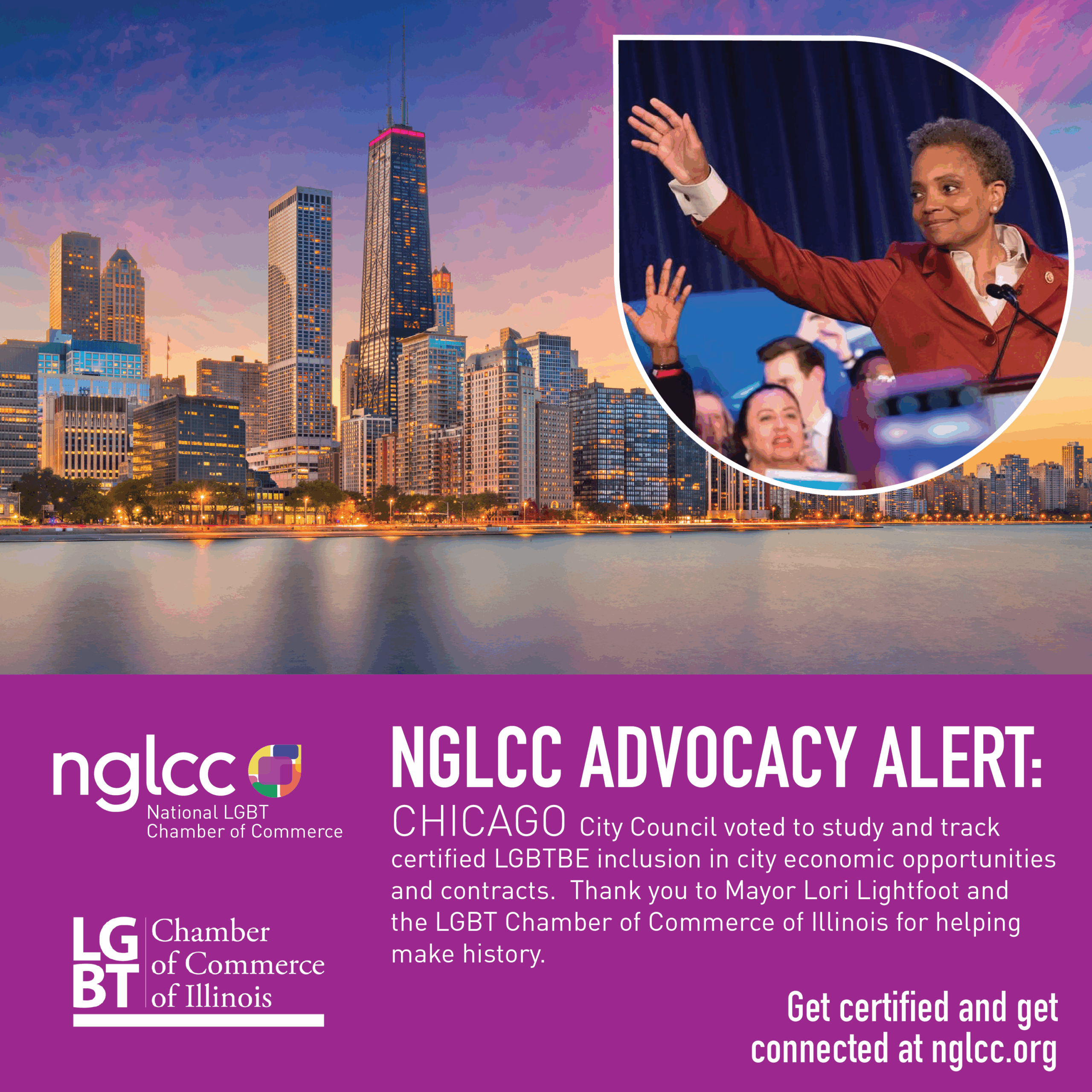“Thanks to the leadership of Mayor Lightfoot and of our local affiliate chamber, the Illinois LGBT Chamber of Commerce, LGBT entrepreneurs in the Chicago region will soon have the opportunity to create jobs and develop innovations that benefit all who live there,” said NGLCC Co-Founder & President Justin Nelson. “As precedent around the country has shown us: when Certified LGBTBEs® are given the resources to grow their businesses and track their participation in city contracting, the path to higher goals and opportunity for every community becomes clear. We are excited to see Certified LGBTBEs® in every field from construction to catering and everything in between help grow the economy of Chicago and beyond.”