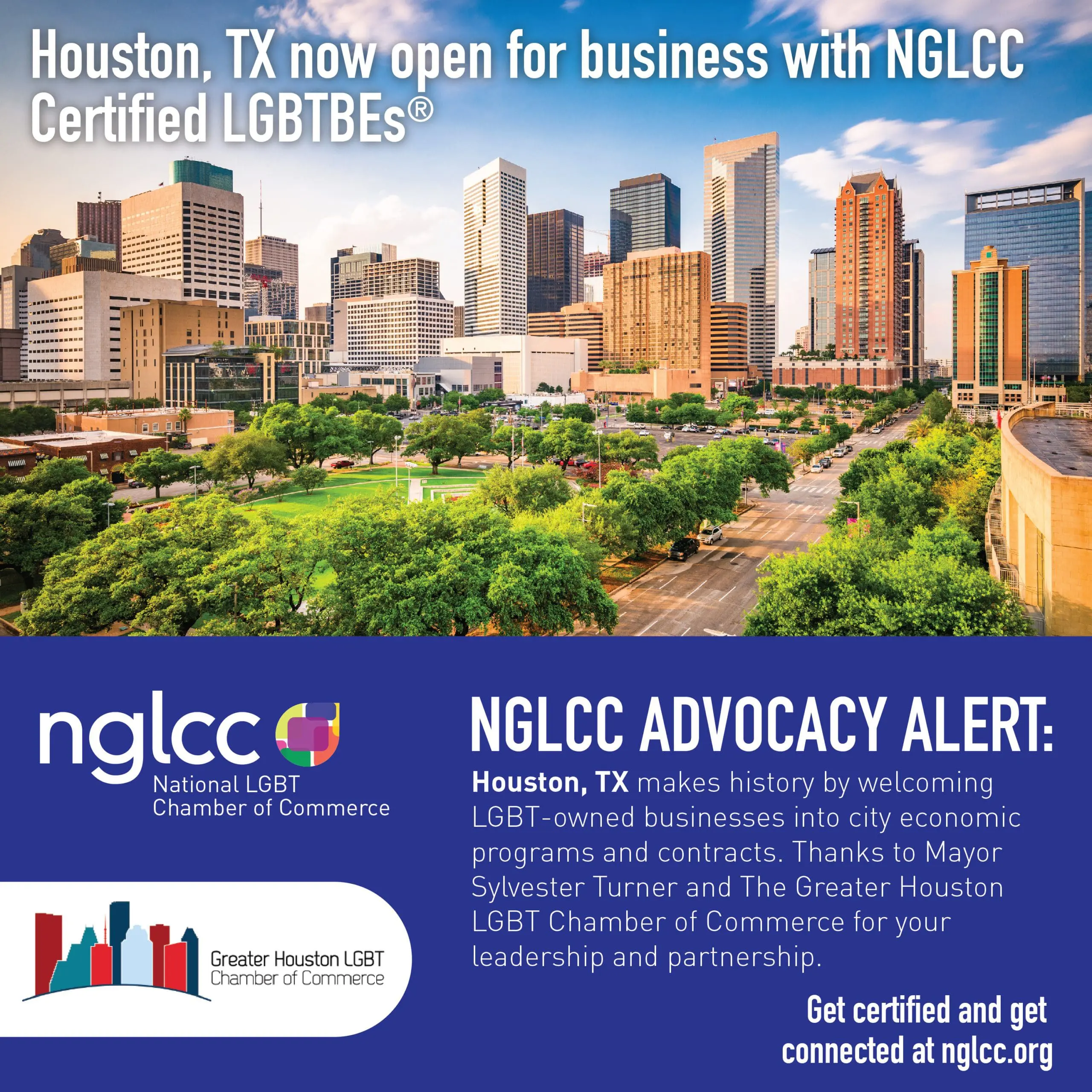 Historic collaboration between The City of Houston, the National LGBT Chamber of Commerce, the Greater Houston LGBT Chamber of Commerce will generate massive social and economic gains for the LGBT business community of Texas